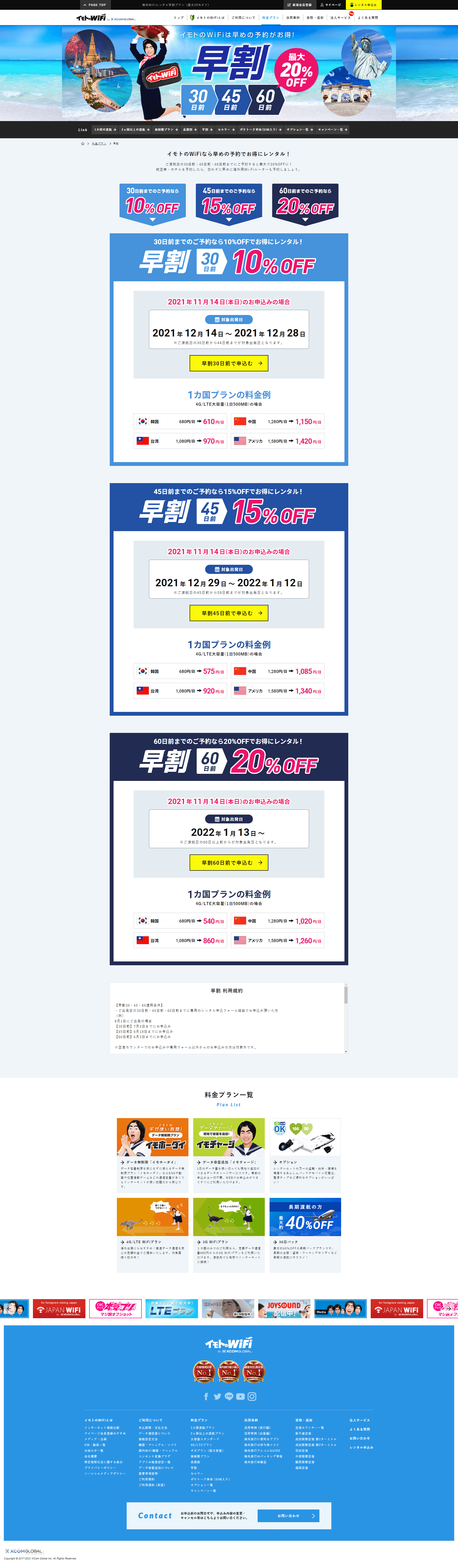 1. 各早割プランごとに割引前と後の金額を掲載することで、お得感を強めました。